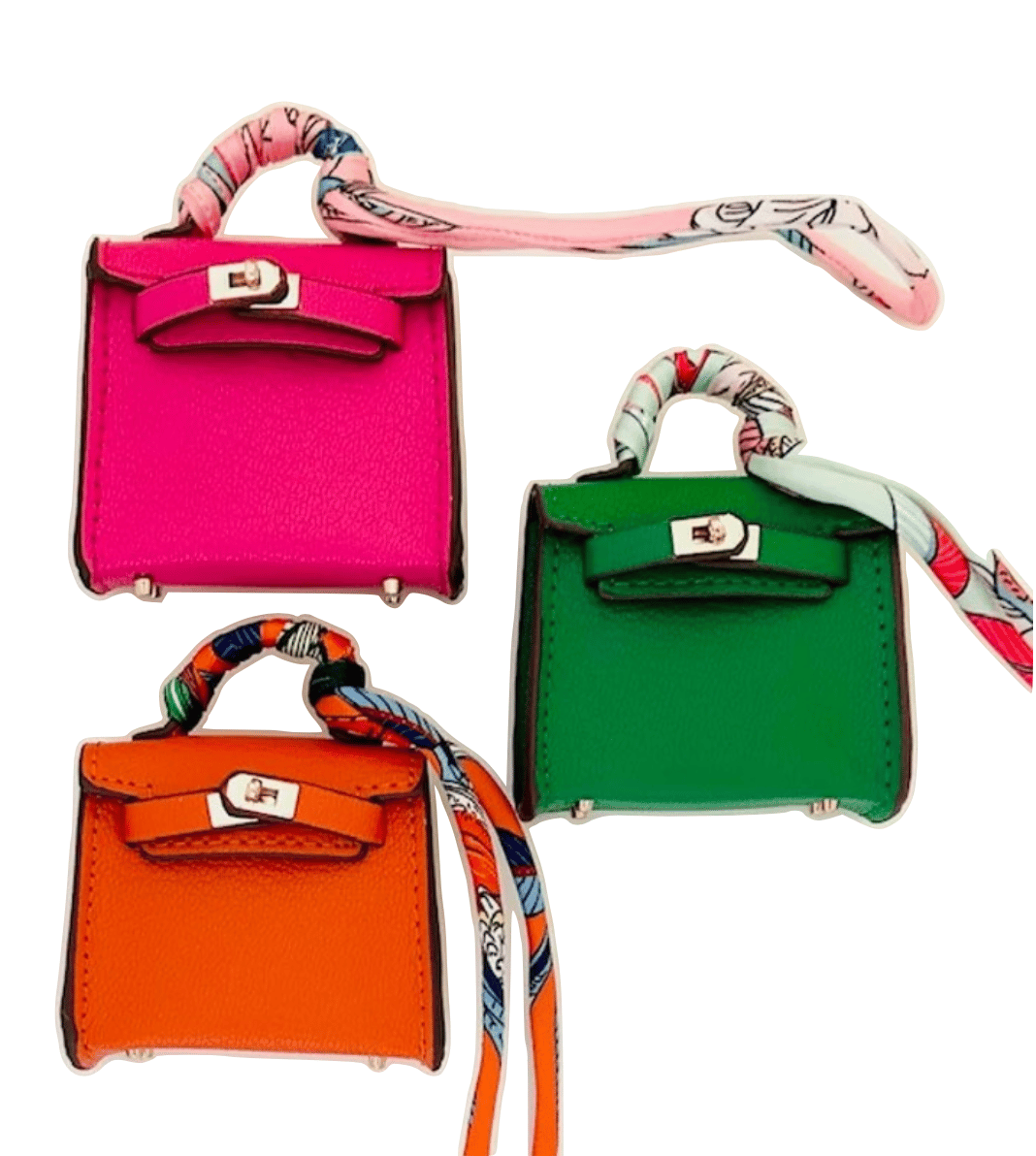 The cutest addition to your handbag! Fuchsia, kelly green, and orange! They measure approximately 2.5" X 2" and the twilly measures approximately 4". They coordinate with our note cards for the perfect gift! ๐ฉท๐๐งก.