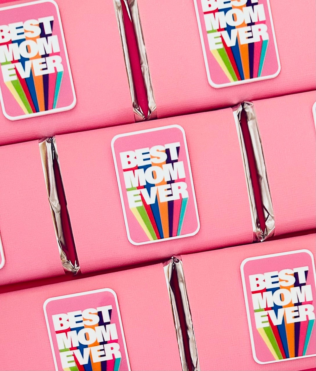 The cutest gift for MOM! BEST MOM EVER adorns bubble gum pink card stock wrapped around a KitKat bar, YUM! They arrive in a poly box ready to gift! I want my momma.