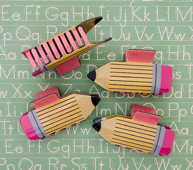 These pencil hair clips are great for back to school or for any fun time! Made of a strong plastic, they measure 3.5" X 1.75". So cute for a student or a fun friend. Pairs well with our crunching numbers calculator! Pencil me in.
