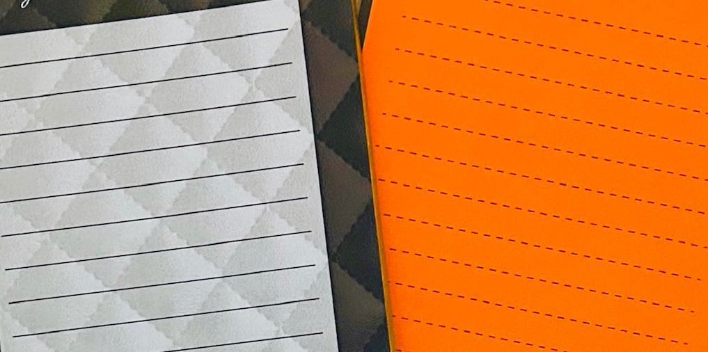 These notepads make the ultimate stocking stuffer! They measure 5.5 x 8.5 inches and have 100 sheets. The notepad has a gold foil edge. He's making a list and checking it twice.